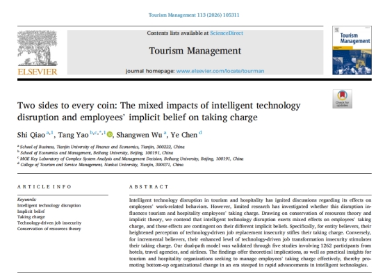 世界杯 乔时副教授在国际顶级期刊Tourism Management发表论文