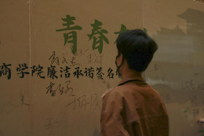 廉洁承诺签名仪式,鼓励同学们依次在廉洁承诺墙上郑重签字,激励同学们亮明廉洁自律的决心,引导同学们将承诺内容内化于心、外化于行、践行于实,不断增强责任感、使命感,在全面建设社会主义现代化国家的生动实践中诠释天财商院青年的忠诚干净担当。