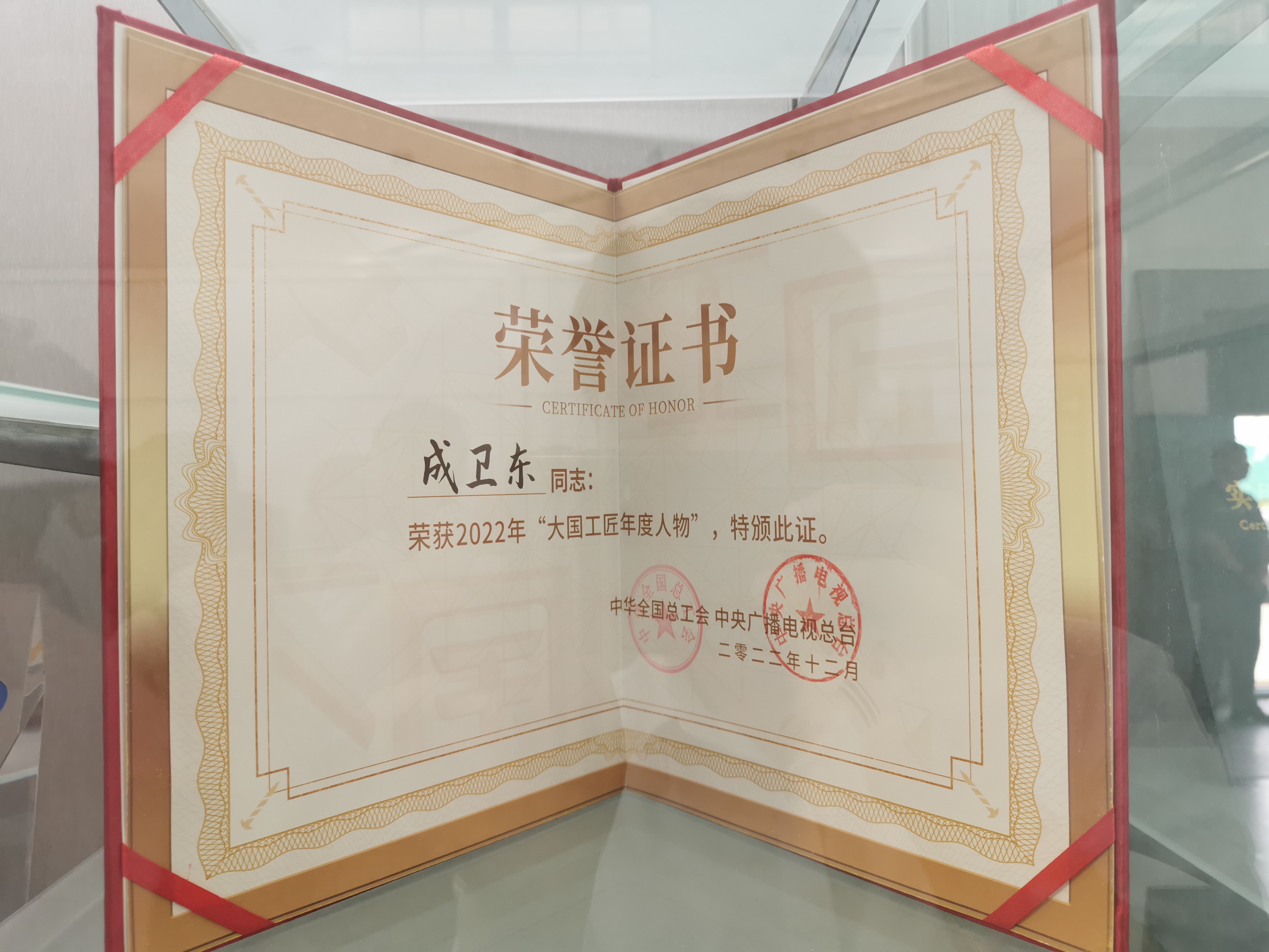 图4 成卫东大国工匠荣誉证书