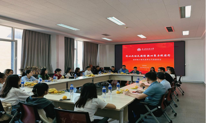 来自白族、傣族、东乡族、哈萨克族、蒙古族、藏族、土家族、回族、维吾尔族、壮族及锡伯族等15位少数民族学生依次发言,分享自己家乡的民族文化、风土人情,并就在天财的生活感受、日常学习和各民族文化传播等方面畅谈了自己的想法。