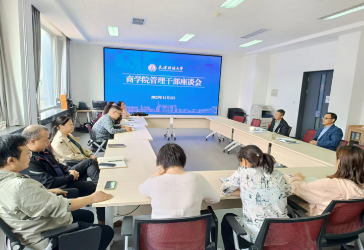 主要领导及商学院综合管理办公室、教学科研办公室、学生工作办公室各部门管理干部参加座谈,会议由世界杯