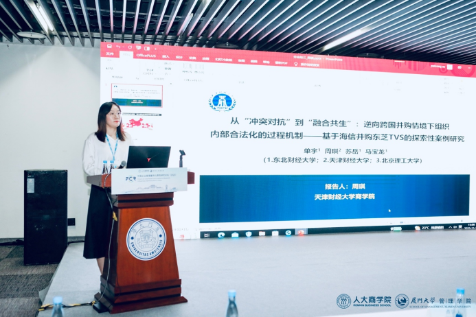 企业管理系周琪老师作为分论坛(三)“战略管理”专题的主持人,宣讲了论文《从“冲突对抗”到“融合共生”:逆向跨国并购情境下组织内部合法化的过程机制——基于海信并购东芝TVS的探索性案例研究》,该论文基于“并购方-被并购方”双边视角,构建了基于并购方合法性建构和被并购方合法性判断的组织内部合法化过程模型,为逆向跨国并购的组织内部合法性研究提供了更丰富的洞见。会议专家对该研究的前沿性给予了高度评价,并对其进一步修改和完善提供了宝贵的建议。