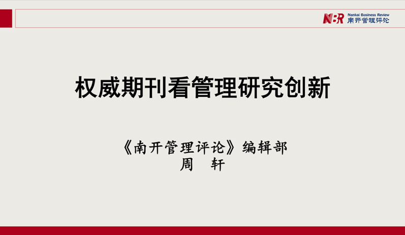 周轩博士首先介绍了中国管理学核心期刊名录、期刊特色、发表状况、选题执行和细节问题,以及《南开管理评论》近年的学术影响、发展情况、期刊栏目、文章特点、期刊创新和变革趋势。其次,结合《南开管理评论》审稿退稿等情况,从选题问题、执行问题以及细节问题三个方面,详细分析了初审退稿原因,鼓励大家探索多元研究方法。再次,介绍了案例研究的发展情况,具体表现在目前案例研究投稿量增长迅速,高质量、高创新、高被引的案例研究逐渐涌现但依然缺乏,存在文章专业分布不平衡等问题。最后,周轩博士建议大家关注大变局与新时代下管理研究创新的机会与挑战,从实践出发,发现当前领域研究的创新点,并针对老师在选题方向、投稿技巧等方面的问题进行了详细解答与探讨。