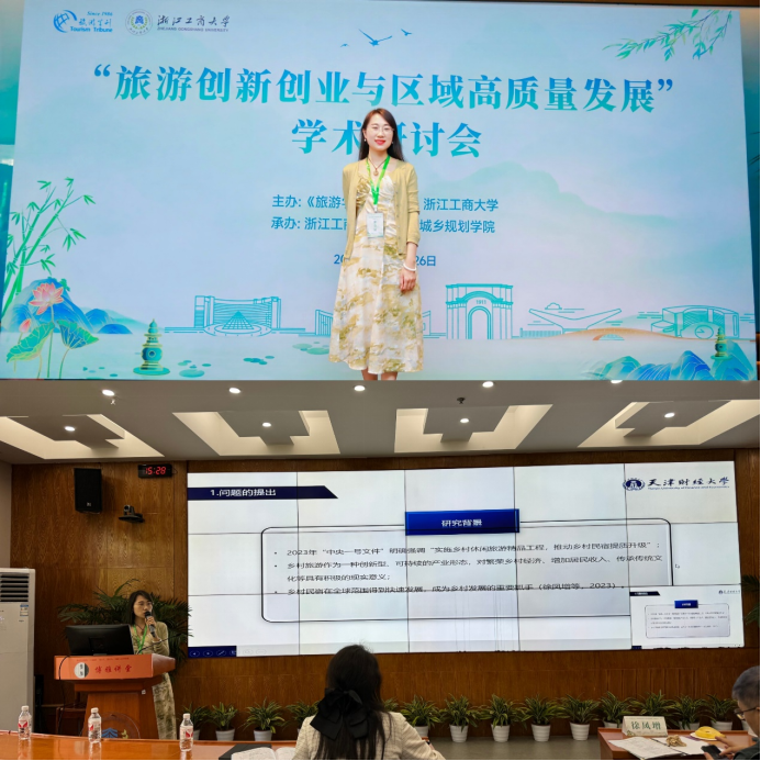 5月24-26日,由《旅游学刊》编辑部、浙江工商大学联合主办,浙江工商大学旅游与城乡规划世界杯 承办的“旅游创新创业与区域高质量发展”学术研讨会在杭州隆重召开。本次研讨会围绕文旅领域如何通过创新创业驱动区域高质量发展进行研讨,来自全国各地高校和科研院所的120余位专家学者、业界代表及师生参加会议。我校世界杯 旅游系王彩彩老师参会分享研究成果,并获得“优秀会议论文”。