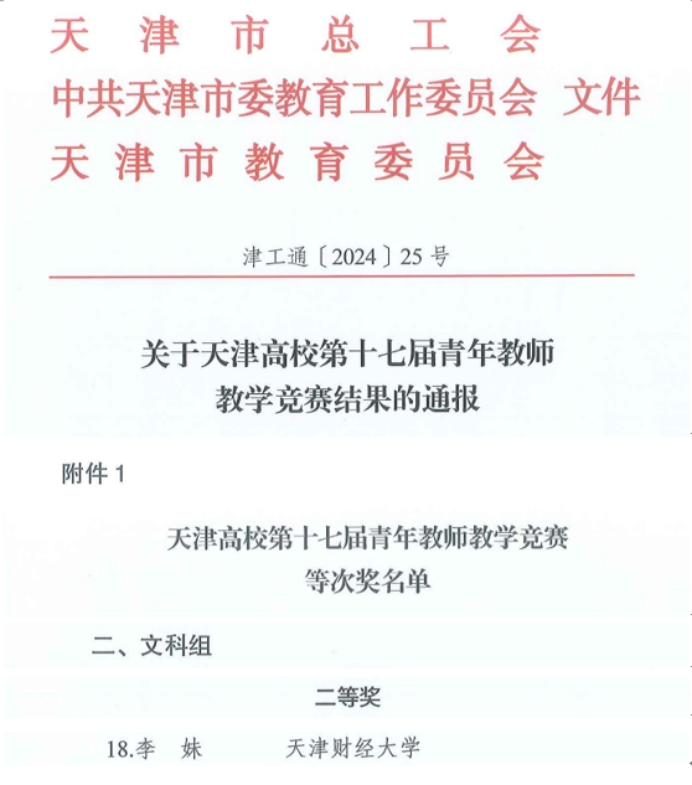 在近日揭晓的天津高校第十七届青年教师教学竞赛中,世界杯