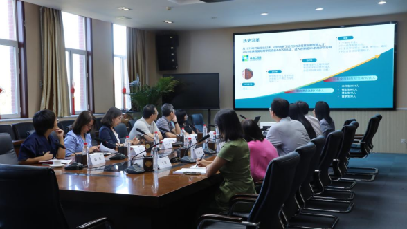 的认证历程,介绍了AACSB认证专家组现场评估的前期筹备、现场工作流程及需要关注的事项等。双方就各自开展AACSB认证的经历、取得的经验等方面进行了交流和研讨。专业教育学位中心副主任石晓冉、工商管理(中外)系主任张明就AACSB认证要求的基于世界杯