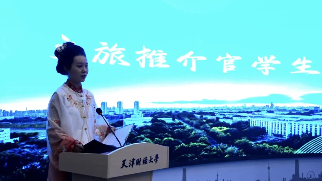 最后,为进一步激励大学生积极参与文旅事业,传播洛阳文化,肖宇亲自为学生代表颁发了“大学生旅游推介官”证书。物流2402班田怡欣作为文旅推介官学生代表发言,她表示将努力用实际行动为传统文化的创新发展探索新路径,为洛阳的文旅事业发展贡献自己的青春力量。
