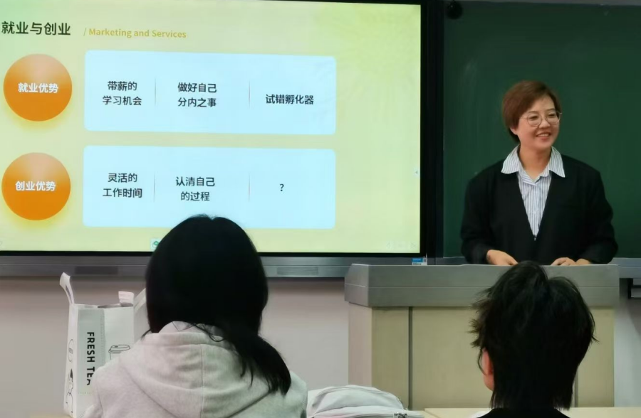 的《服务营销学》课堂上,不二萱品牌创始人任明珠(“不凡的BOSS”企业家)为学生们带来了一场关于烘焙连锁服务业的精彩讲座。她首先描绘了行业的当前动态和未来趋势,通过案例分析深入探讨了市场营销的核心本质以及服务营销中的关键营销模式;分享了在职场和创业中取得成功的秘诀——在职场上,持续自我学习、提升专业技能和职业素养;在创业中,保持理性思考、勇敢面对挑战,并不断提升前瞻性思维与战略洞察力。同学们针对营销专业的未来就业方向、人才需求趋势分析和在校期间的能力养成等方面的问题踊跃提问。任总对同学们的问题从自我成长的目标定位、学习习惯建立和专业技能培养等方面进行了深入解答,启发了大家对营销专业人才成长和未来职业规划的深入思考。