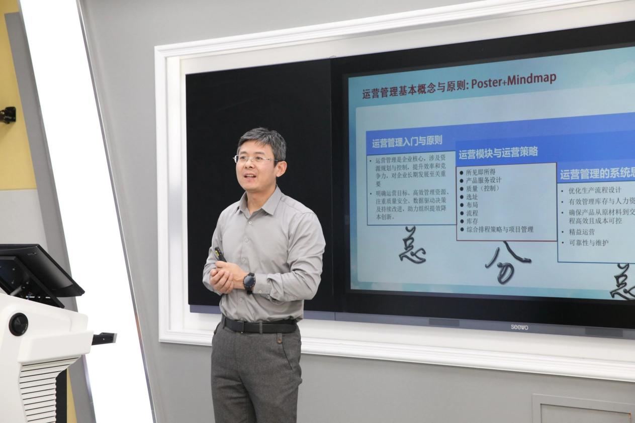 张建宇团队积极备赛,深入钻研教学内容,大胆创新教学方法,经过校赛遴选、市赛网络评审预赛,进入决赛。张建宇团队认为数字经济时代传统教学已无法满足学生需求,《运营管理》课程需要在意义建构理论的指导下,通过感知情境、阐释框架和行动验证的三重循环帮助学生将离散的知识点转化为系统化认知体系。课程采用“问题前置”式教学法,引导学生通过多元信息源构建问题认知,建立情境锚定机制。教学设计上,将企业、高校和学生充分融合,构建“企业——高校——学生”三元交互系统。教师从知识传授者转型为“意义架构师”,通过开发教学案例、运用苏格拉底诘问法推动深度思考,搭建企业实战专家与学术前沿的对话平台。课程体系通过“认知冲突-意义协商-实践验证”的过程,将运营流程知识转化为具有战略价值的决策智慧。