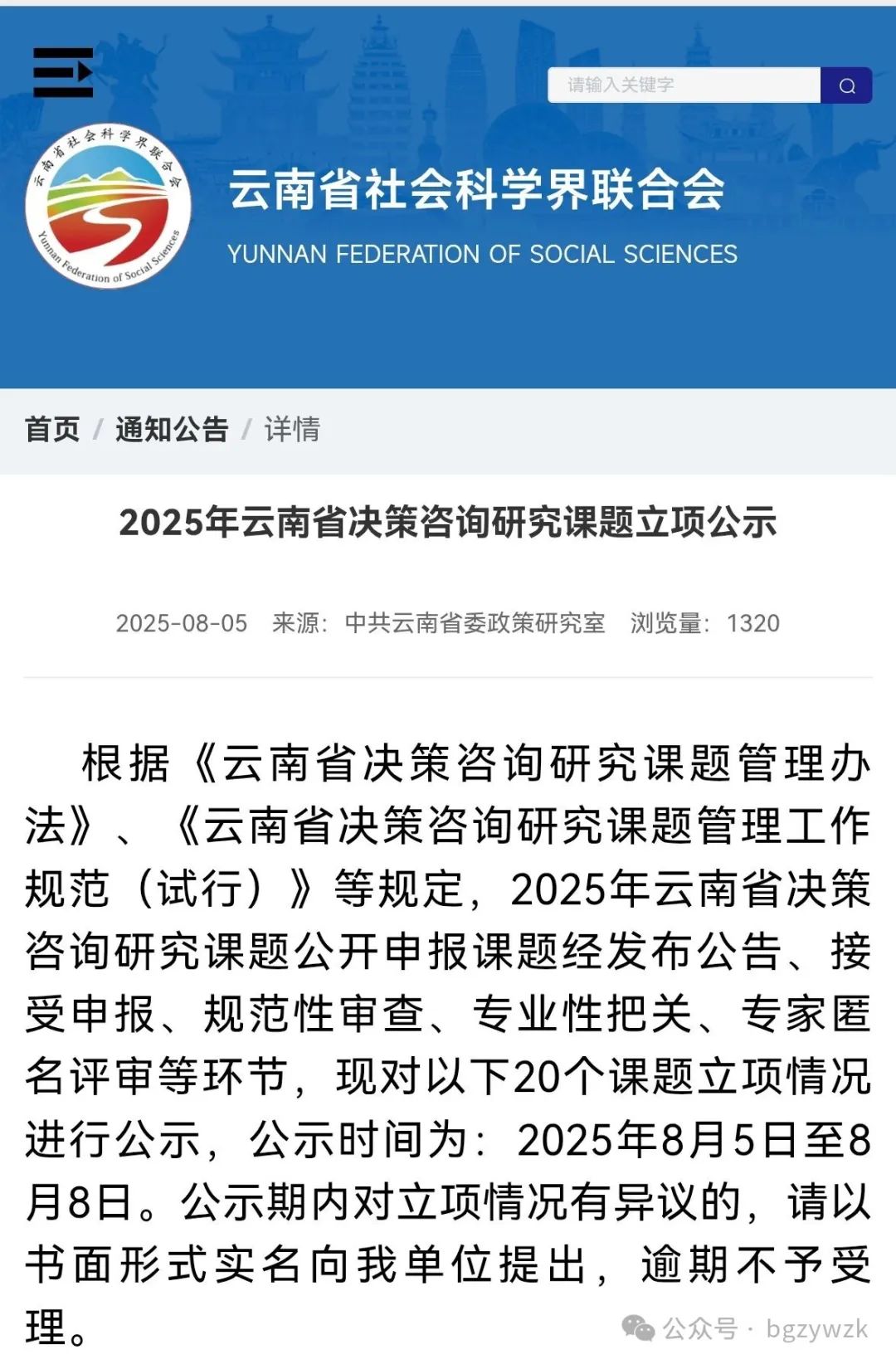 近日,2025年云南省决策咨询研究课题立项公布,世界杯