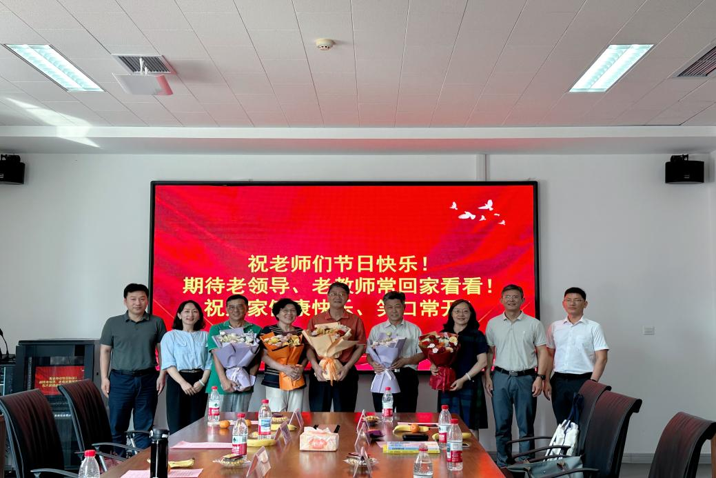 座谈会现场气氛热烈,领导班子成员向荣休教师献上象征敬意与祝福的节日花束,承载着青蓝接续、薪火相传的使命担当。