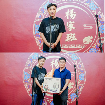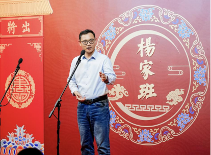 杨家班相声会馆总经理杨化然先生随后登台致辞。作为“杨氏相声第三代传人”,他从“相声里的团圆意”切入,巧妙呼应“家国同庆”的晚会主题,让师生在轻松氛围中感受到传统文化与节日温情的交融。夏良杰副院长为杨化然先生赠送天财定制纪念品,以示感谢。