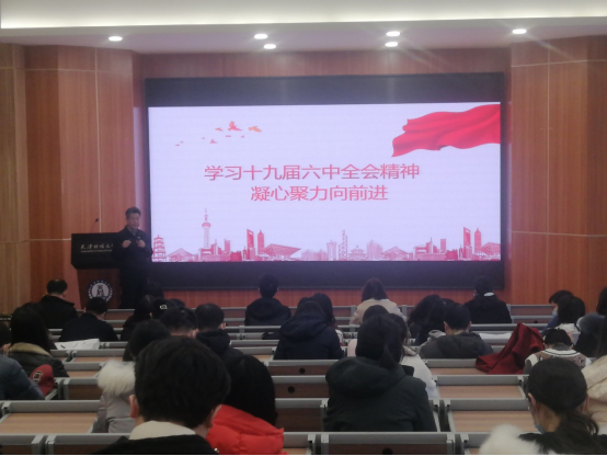 为深入学习宣传贯彻党的十九届六中全会精神,切实把师生的思想和行动统一到全会精神上来,按照党史学习教育工作安排,12月17日,世界杯 党委书记彭正银在综合楼Z001进行学习贯彻党的十九届六中全会精神宣讲,全体教工参加报告会。