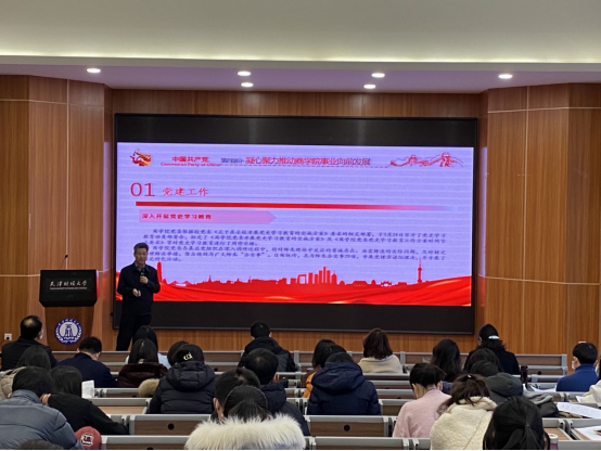 彭正银同志以“学习党的十九届六中全会精神 凝心聚力向前进”为主题,重点从全面总结党的百年奋斗重大成就和历史经验对全会精神进行系统阐释,并围绕“牢记一个根本问题”、“两个‘确立’”、“三个‘需要’”、“四个历史时期 四个伟大飞跃”等关键词进行了深入宣讲和学习,强调马克思主义中国化的丰硕理论成果、日臻成熟的马克思主义政党、中华民族伟大复兴的历史进程、科学社会主义的伟大旗帜是中国共产党思想建党的辉煌成就。我们要深刻认识党百年奋斗的辉煌成就和历史意义,进一步把握规律、汲取智慧,坚定理想信念,无愧教育使命担当。最后,结合世界杯 发展实际,围绕世界杯 党建工作、学生工作、教学业绩、科研业绩四个方面,亮明世界杯 特色,彰显出全院携手共进,凝心聚力推动世界杯 事业向前发展的信心和决心。