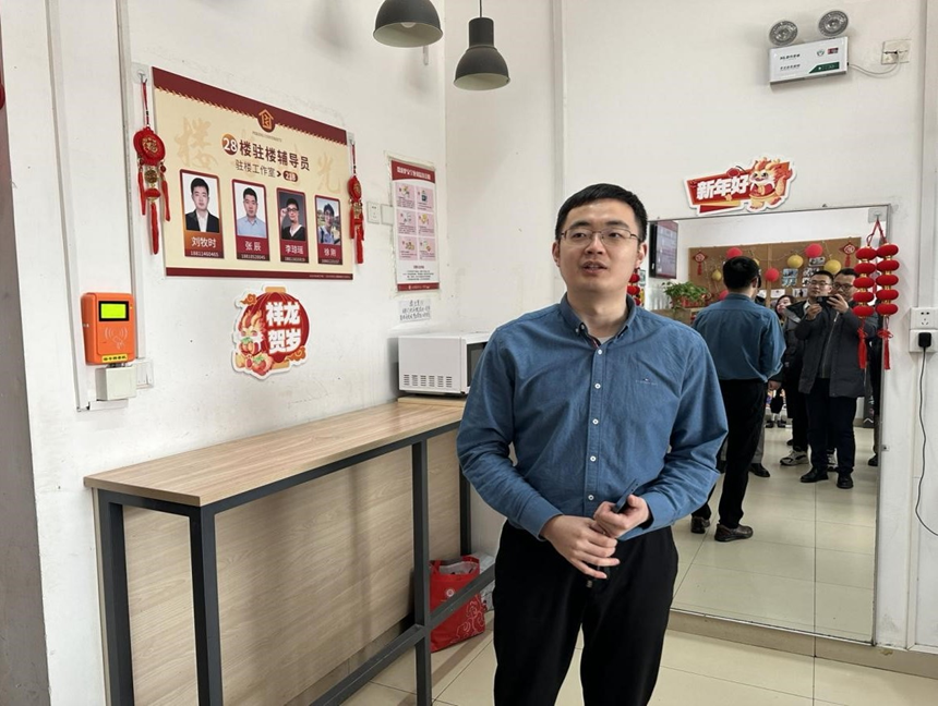 团委书记刘牧时介绍了驻楼辅导员的工作内容和运行机制,如何更好地开展育人工作。