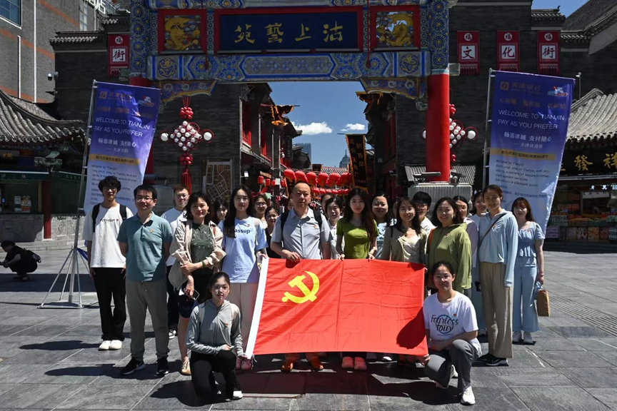 旅游系教师党支部与学生党支部,并邀请部分入党积极分子,于5月31日联合开展了主题党日活动——古今交融、中西合璧的天津城市漫步时空之旅。从古文化街,沿海河途经金汤桥,再到意式风情区,支部党员们游览中外历史遗迹,体验非物质文化遗产,缅怀革命先烈,接受思想政治教育,提升了参与天津建设发展的成就感与自信心。