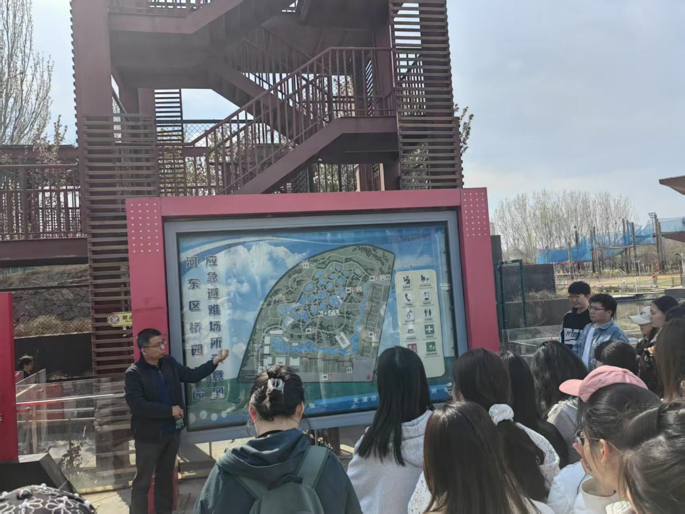 津保环投作为天津临港投资控股有限公司全资子公司,是承接天津港保税区“两港三区”运营管理服务的重要载体,公司始终坚持“大市政、大环保、大智慧”发展战略,为区域提供市政绿化环卫一体化养管服务。在此次联合党日活动中,津保环投首先邀请老师和同学们参观了公司位于河东区的桥园公园和河东公园两个项目,项目负责人不仅为大家讲解了公园利用填挖技术创建城市绿地、通过微地形设计收集酸性雨水、中和碱性土壤,从而实现以自然过程推动生态修复,实现生态系统服务的过程;而且还介绍了公司目前在城市公园运营中养护管理的协同化、精细化、集成化以及智慧化实践,使老师和同学们在领略了春日美景的同时,更是感受到了智慧赋能城市运营的魅力与创新活力。