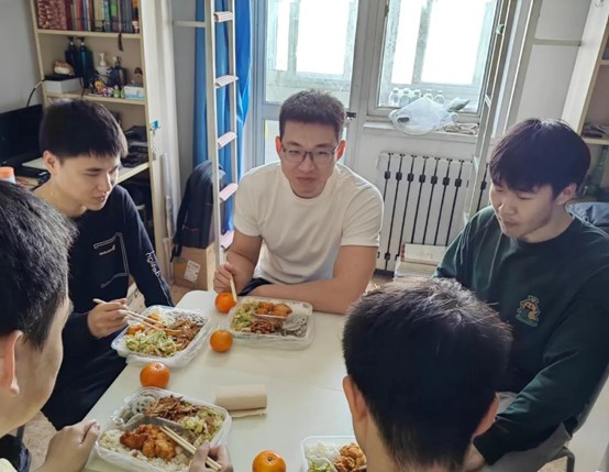 3月15中午,物流与供应链管理系韩鹏老师携带美食来到优秀宿舍10-A-409,与同学共进午餐。期间,韩鹏老师与同学们促膝谈心,关心同学们新学期开学以来的生活与学习。同学们也畅所欲言,提出疑惑。韩鹏老师以亲身经历与体会为同学们分享经验、解答疑惑,令同学们有如沐春风之感。