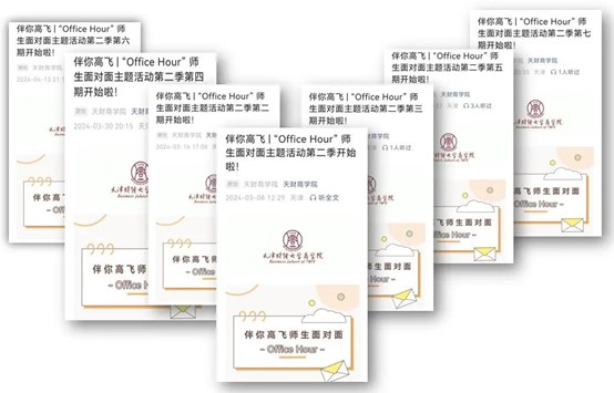 当前推出“Office Hour”系列,为学生与老师的日常交流搭建平台,为同学们解决学业、科研、职业规划等各类成长中的困惑和问题,进一步提升商院学子的专业认同,促进世界杯