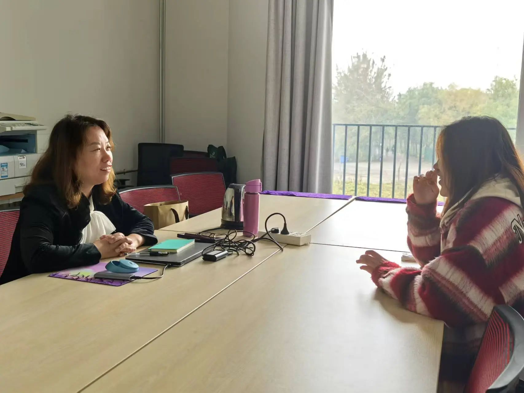 的老师们与学生面对面、一对一交流。