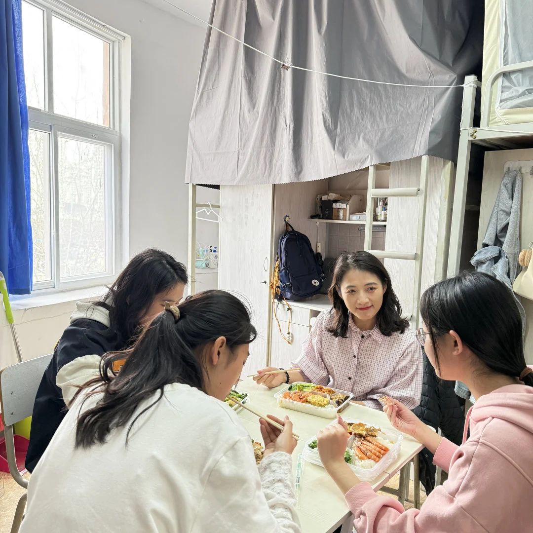 此次“教师外卖”活动让我们收获颇丰。起初,我们都有些拘谨,但高老师随和的态度很快让我们放松下来。她和我们一样坐在宿舍的小板凳上,边吃边聊,从学习困惑到生活琐事,从专业发展到人生规划,话题自然而然地展开。这顿简单的午餐,让我感受到师生之间最真挚的情感交流。她不仅关心我们的学业,更关注我们的成长。这种近距离的交流,比课堂上的讲授更让人印象深刻,不仅让我对大学生活有了更深的理解,而且拉近了师生之间的距离。在未来的日子里,我会珍惜每一次与老师交流的机会,让这些温暖的时刻成为我成长路上的明灯。