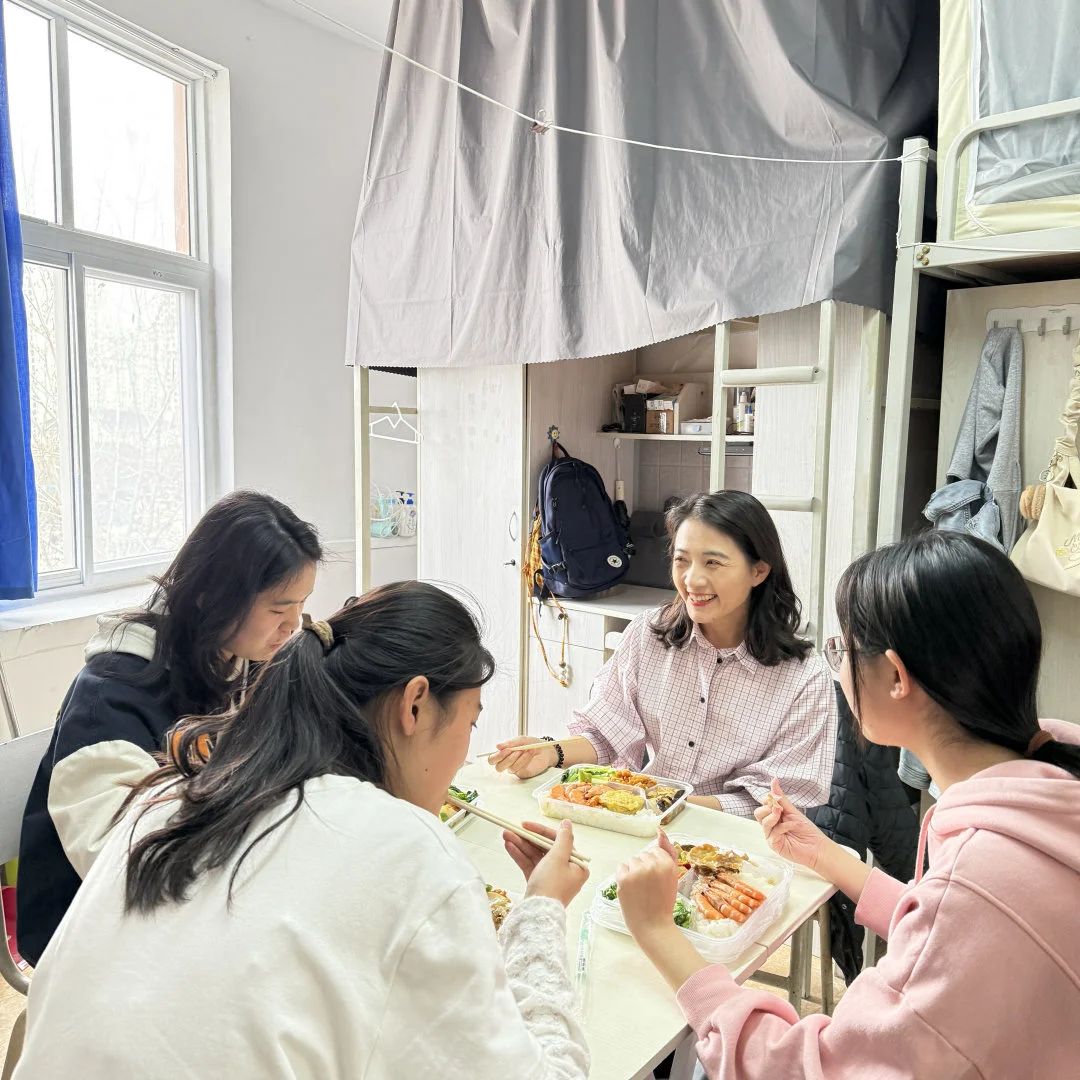 今天中午,高老师来到宿舍与我们一同吃午餐,这真是一次既特别又难忘的经历!这次与老师近距离接触后,我们才发现老师如此亲切随和。吃饭时,老师和我们轻松地聊天,关心我们的生活,分享有趣的经历,现场欢声笑语不断。这次午餐不仅拉近了我们和老师之间的距离,也让我明白师生之间不只是教与学的关系,更有着真挚的情谊。很感谢高老师给我们带来这样温暖又开心的时光,期待未来还有更多这样美好的互动。
