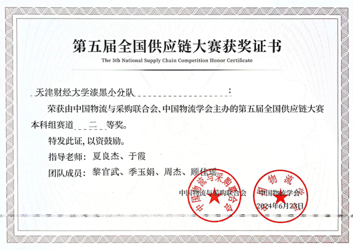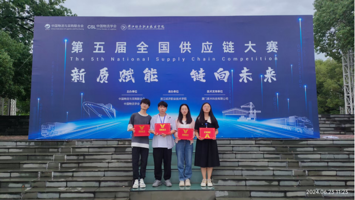 物流与供应链管理系学生黎官武、季玉娟、周杰、顾佳瑶在夏良杰老师和于霞老师的指导下,与不同高校的强劲对手同台竞技,展现了出色的应变能力和团队合作精神。经过四个小时高强度、高密度的现场模拟操作供应链运营实战系统,应对竞赛中生产、销售、配送、采购等供应链环节中出现的各种问题和突发事件,克服竞争压力、资金熔断风险、牛鞭效应逐级放大等多重困难,搭建出一条协同、高效、完整、贯通的前后端全供应链,与总决赛的60支队伍进行激烈的角逐后,最终获得本科组二等奖。