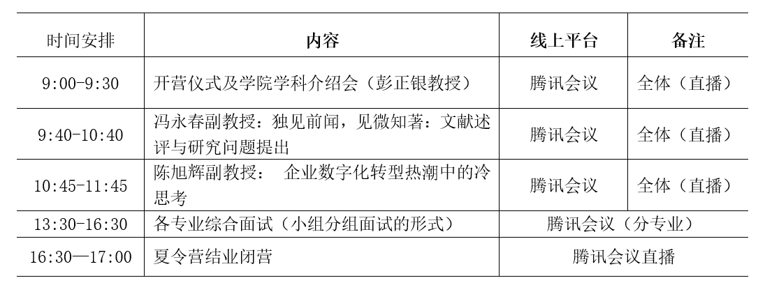 研究生的优秀学子报名参加交流活动(面对在校大三学生),本科专业不限于经管类专业,特别欢迎工科和理科学生入营。根据新冠疫情防控要求,2022年暑期夏令营拟以线上方式进行。