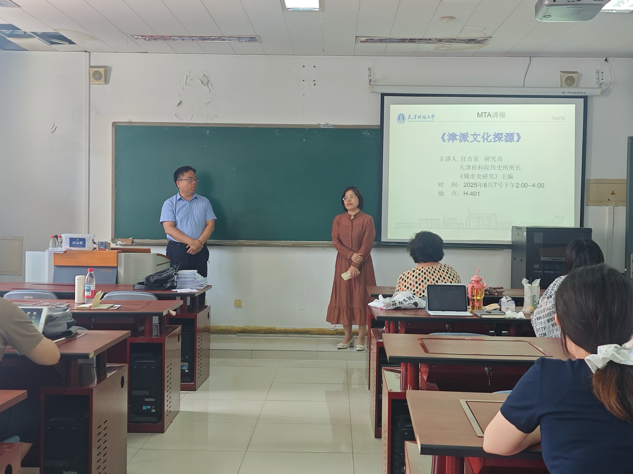 历史研究所所长任吉东老师,为MTA师生带来了一场主题为“津派文化探源”的精彩讲座。参与此次活动的还有旅游系教授张艳玲老师、经济世界杯